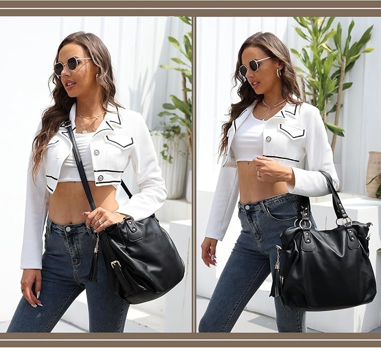 • UNIQUE DESIGN: With adjustable and removable shoulder strap, the large tote bag can be used as hand carry, crossbody and shoulder handbag.Tassel decoration makes the bag more fashion.